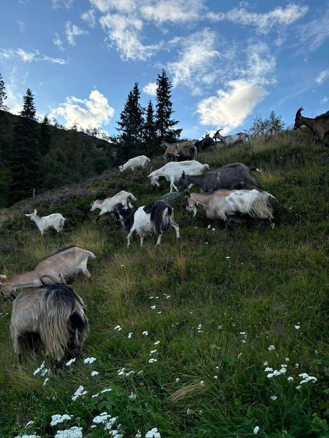 Om sommeren tar geitene turen til seters, der vi har vårt eget ysteri og et lite sommerutsalg. Her produserer vi fersk ost og byr på ekte seterstemning – fra omtrent midten av juni og ut september, så lenge beitet holder seg grønt og godt. Storfeet koser seg da hjemme på beite og nyter sin egen sommerferie i frodige omgivelser.